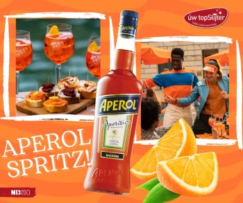 Aperol, de Aperitivo met een onnavolgbare smaak en kleur. Het originele recept, dat sinds 1919 ongewijzigd is gebleven, geeft Aperol zijn heldere oranje tint en zijn zoete bitterheid. De combinatie van ingrediënten geeft Aperol zijn verfijnde en evenwichtige smaak, dankzij de infusie van zorgvuldig geselecteerde vruchten, kruiden en wortels. Aperol is een drankje met een verfrissende smaak, trouw aan het originele, geheime recept.
